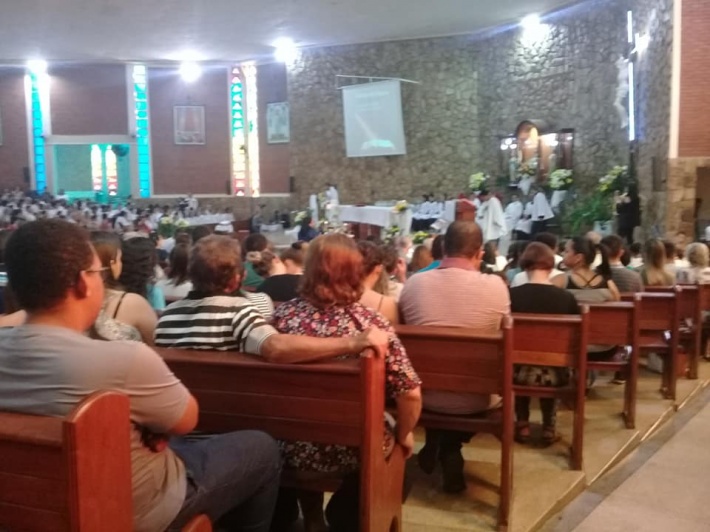 Centenas de pessoas acompanharam a missa e a procissão que também recebeu publicações e transmissões feitas por católicos que postaram nas redes sociais.