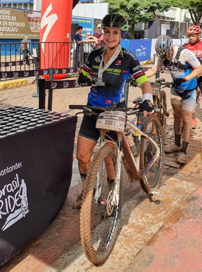 Michele Carina Merola garantiu o 1º lugar na Maratona Cem Canaviais e é destaque também em várias outras competições de ciclismo.