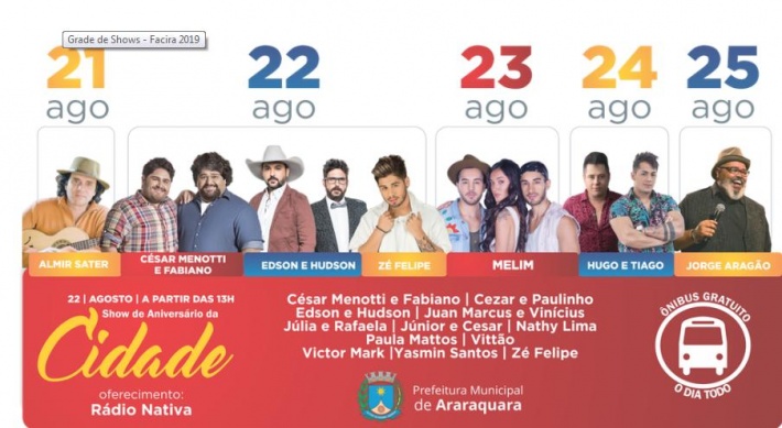Shows: Confira a programação completa no (www.araraquara.sp.gov.br/facira2019).