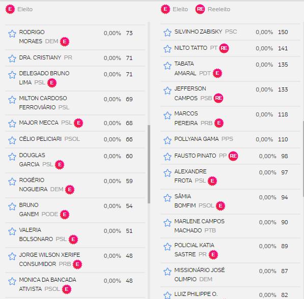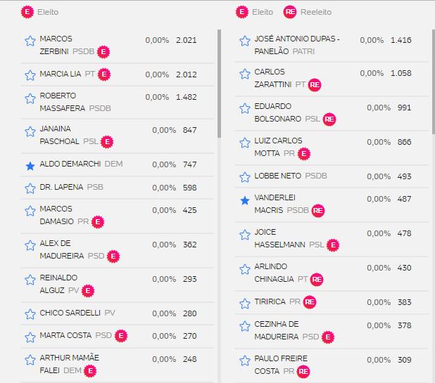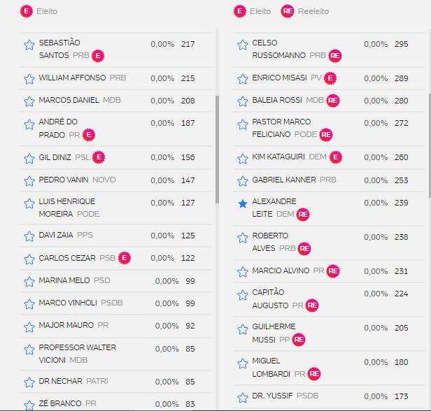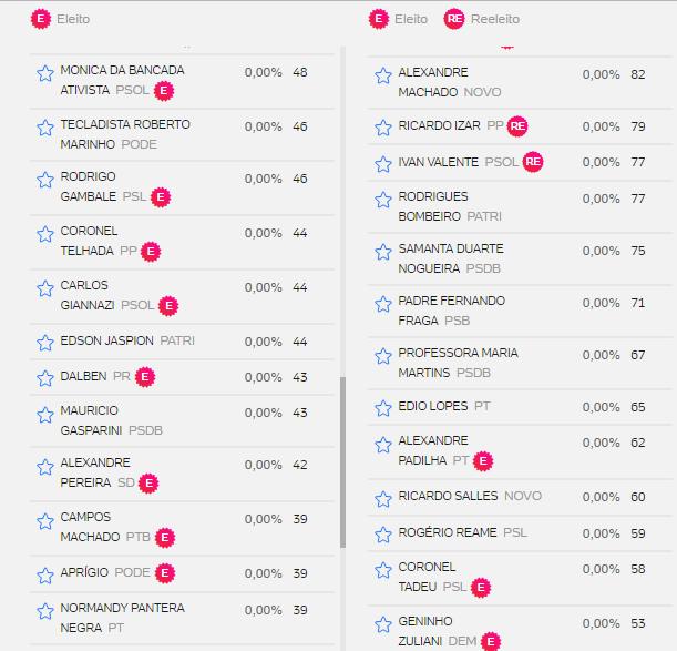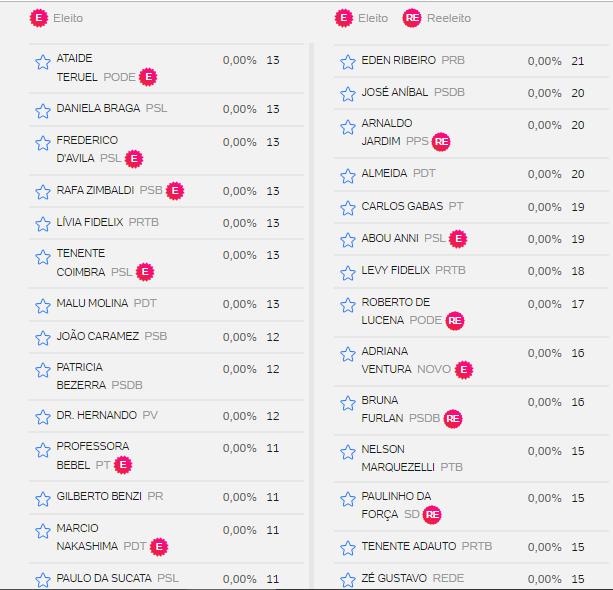 Veja abaixo lista de votos de outros candidatos.