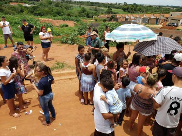 Moradores aguardando os brinquedos.