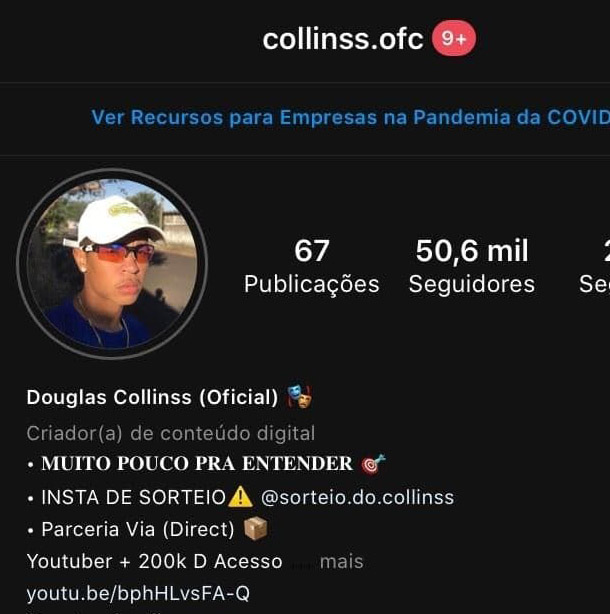 O influencier Douglas Collinss tem mais de 50 mil seguidores no stragam, um pouco mais de 30 mil no Tik-tok, além números expressivos do You tube e outras mídias sociais.