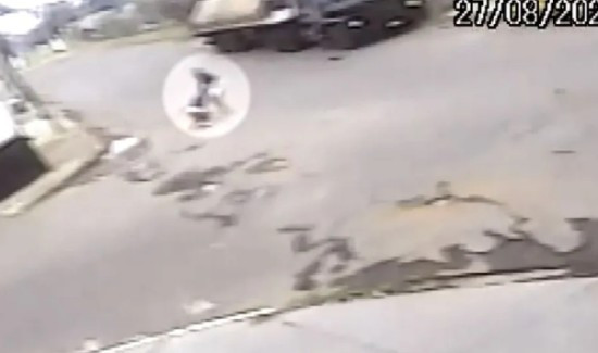 As imagens mostram o momento em que um homem vai em direção à vítima, começa a agredi-la com socos e a arrasta. Ela reage, mas é levada para trás de um caminhão que estava estacionado. A suspeita é que, ali, ele tentou praticar o abuso sexual contra a mulher.