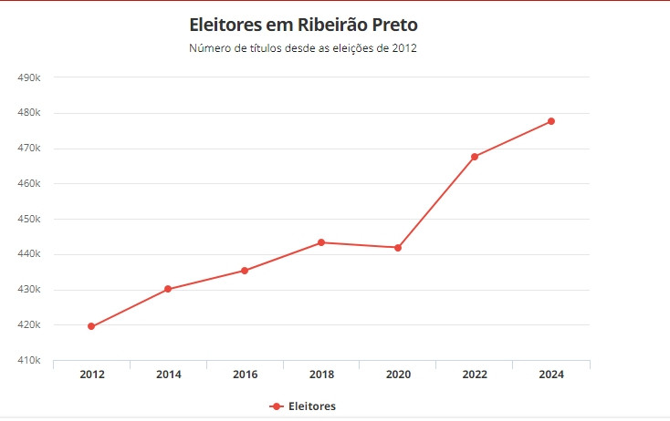 Dados da Justiça Eleitoral mostram que 477.595 eleitores em Ribeirão Preto (SP) estão aptos a comparecer às urnas nas eleições municipais em outubro deste ano, o maior número da história.