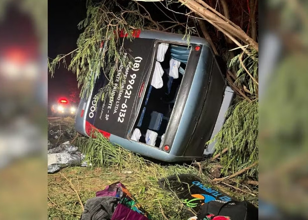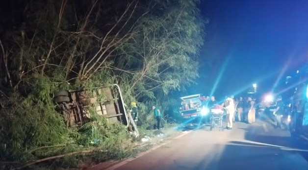 Segundo a polícia, veículo tombou após ser fechado em uma rodovia do norte do estado, na noite de domingo (31). Passageiros voltavam de uma convenção religiosa em Maringá.