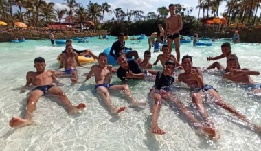 Em comemoração ao Dia das Crianças, alunos do projeto Destaquemil viajam para parque aquático na cidade de Olímpia(SP).