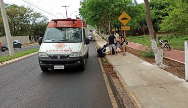 A vítima foi encontrada caída na Alameda Aldo Lupo com sua bicicleta motorizada. Acidente foi considerado grave e a vítima foi socorrida pelo SAMU).