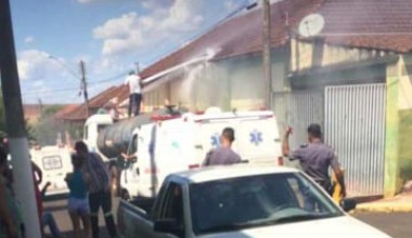 Caminhão pipa da prefeitura e unidades do Corpo de Bombeiros de Araraquara e Policia Militar estiveram em Rincão durante a ocorrência que deixou dois feridos.
