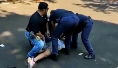 Como a mulher não quis obedecer as ordens da guarda municipal de sair do local, acabou sendo derrubada no chão e sendo presa por descumprir o decreto do Município.